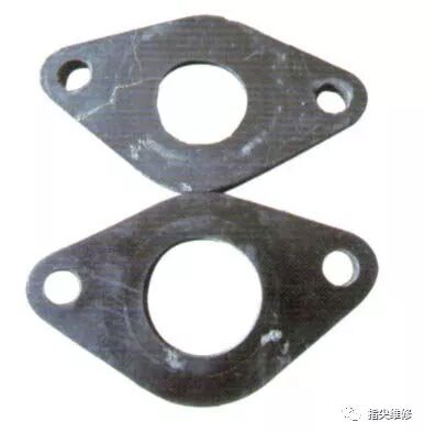 检查到这里,确实让人有点头大了,到底是哪里的原因呢?无奈之下,再次拆下化油器总成仔细检查,还没检查化油器,忽然发现缸体与与化油器之间的接口垫好像不对劲,拿起来仔细观察,感觉内径不正常,放到化油器上或者缸体上,比原口径都要小不少。如下图,上部这个接口垫是刚刚换下来的,下面这个是原车件,标准尺寸的。 询问车主这是什么时候换的,车主说上次化油器漏油时,发现原车上的接口垫坏了,维修工就从旁边的一台110旧车上拆了一个装上了这车,并没有注意口径还有不同。至此,故障原因明确了,就是这么个接口垫口径的偏差,造成可燃混合气进人气缸的量明显过少,造成了加速缓慢,车没劲的怪现象,更换内径尺寸正常的接口垫,精心复装车辆。起动发动机,一触即发,稍作暖车后上路试车,确认故障排除。