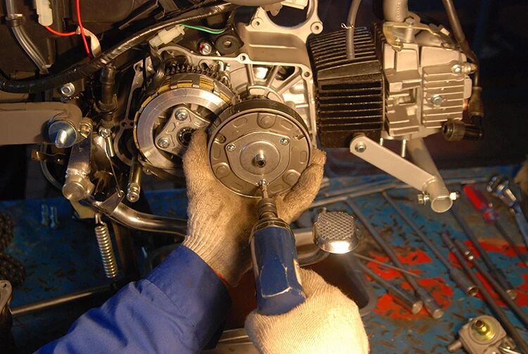 摩托车离合器的作用,是把发动机的动力传递给变速器,并在必要时切断发动机与变速器之间的动力传递。
