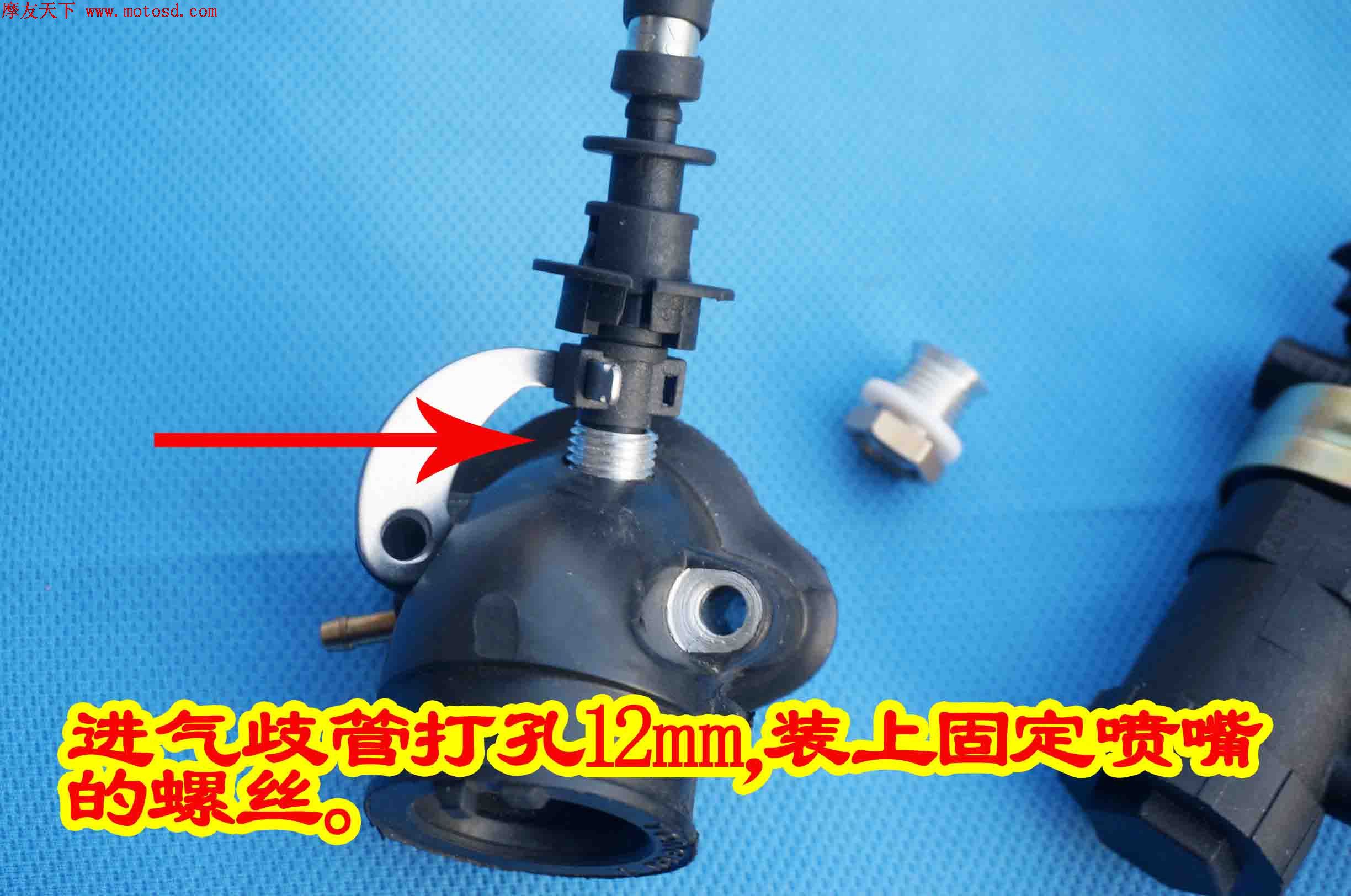 部分车型的油门线接头为8mm直径,喷油器油门线固定孔是常用的6mm,需要使用8.2-8.5mm钻头扩一下孔,打孔的时候请注意不要用力,防止意外损坏